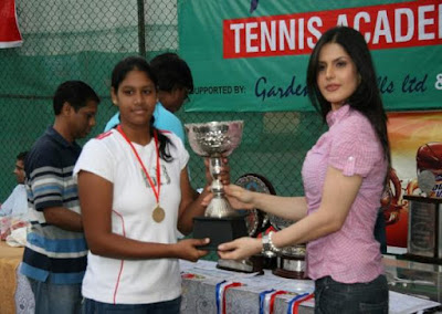 Beautiful Zarine Khan was spotted at Tennis Academy event at Xaviers, Mumbai. Zareen was seen in all new look. Till date we had seen her in Indian sarees only. Zarine looked hot and graceful at the event. Veer Movie Actress Zarine Khan during the tennis academy event at Xaviers in Mumbai.